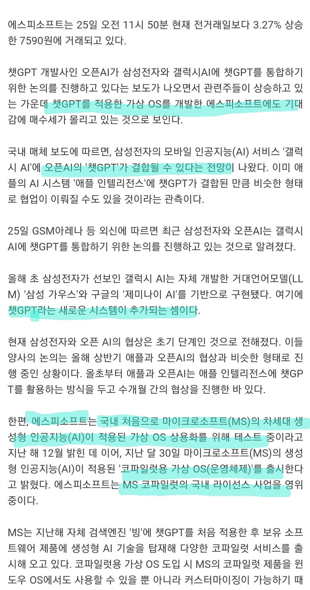 재료 : AI 기술력, 삼성, MS연결 (주도섹터, 좋음)