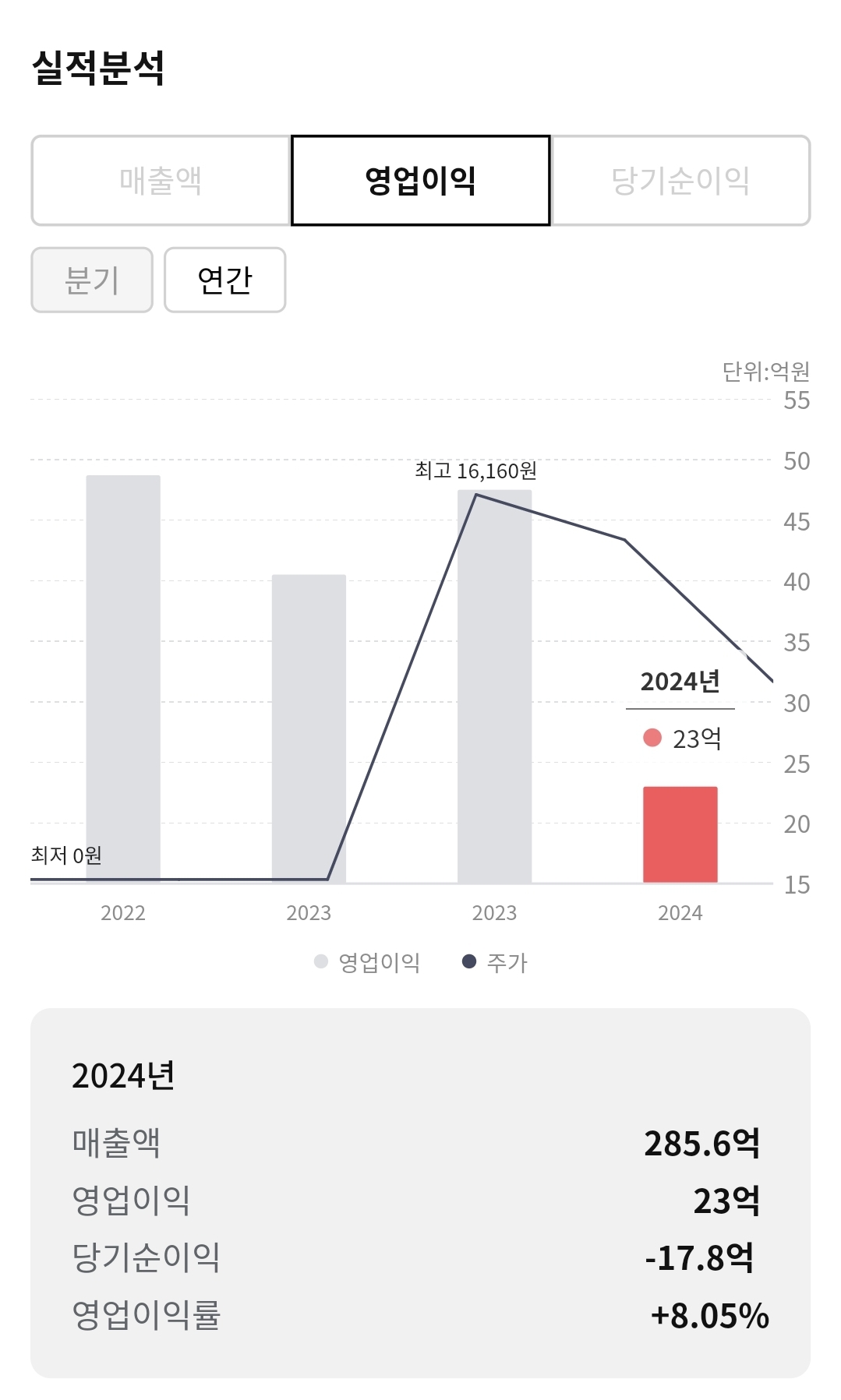 실적 : 적자 (안좋음)