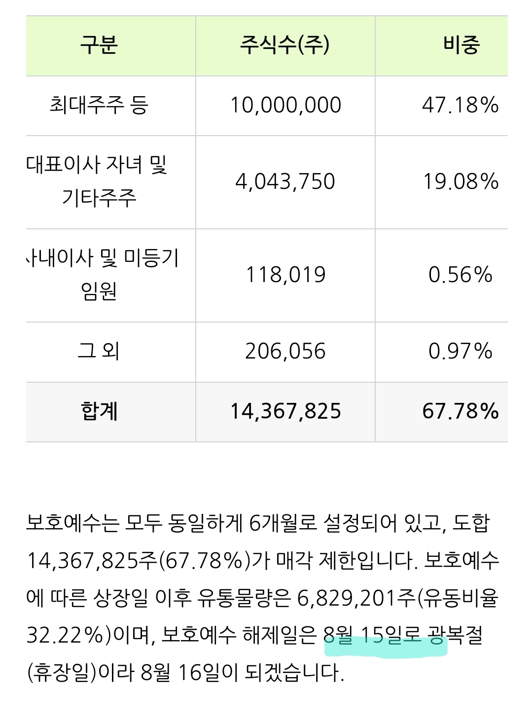 24.2월 상장, 보호예수 8월에 풀림, 다음번 25.3,4월