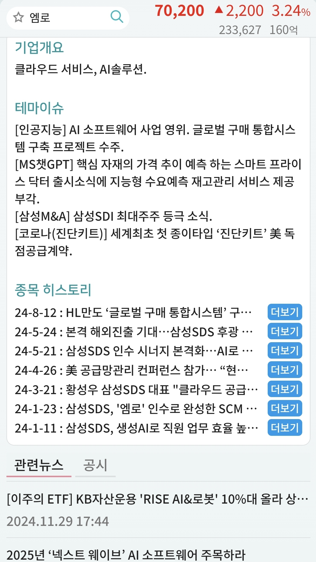 카테고리 없음 [2024.12.01 관심주] 엠로(4) 하미니 2024. 12. 1. 18:13 재료 : AI섹터, AI주도주?차트 : 정배열, 손익비 좋은자리(좋음)수급 : 기관매수(좋음)실적 : 흑자(23년 적자, 일시적평가손익), 전망좋음거래대금 : 장대양봉 384억(좋음) 공유하기 게시글 관리 포스트 잇