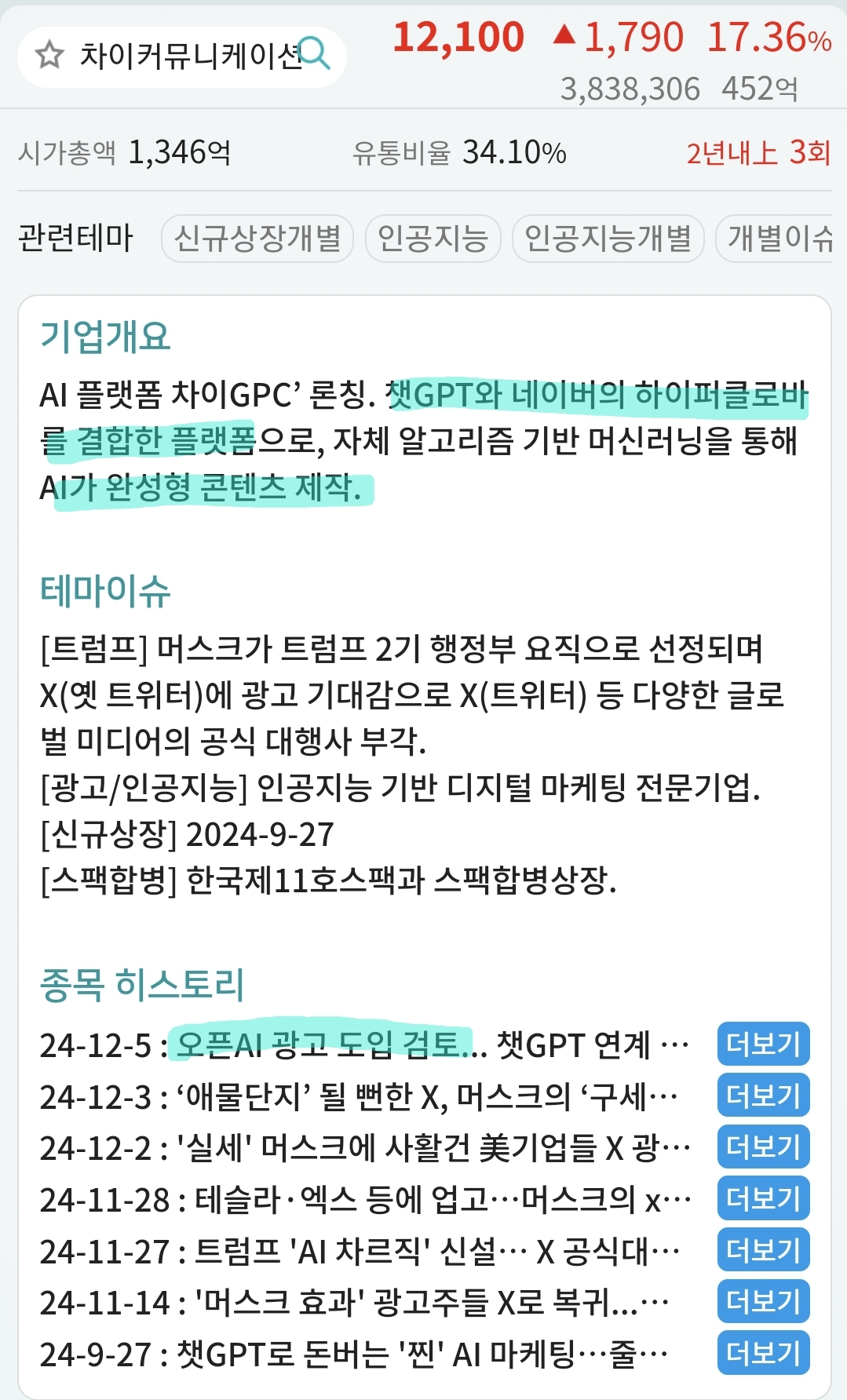 차이커뮤니케이션 2024.9.27상장