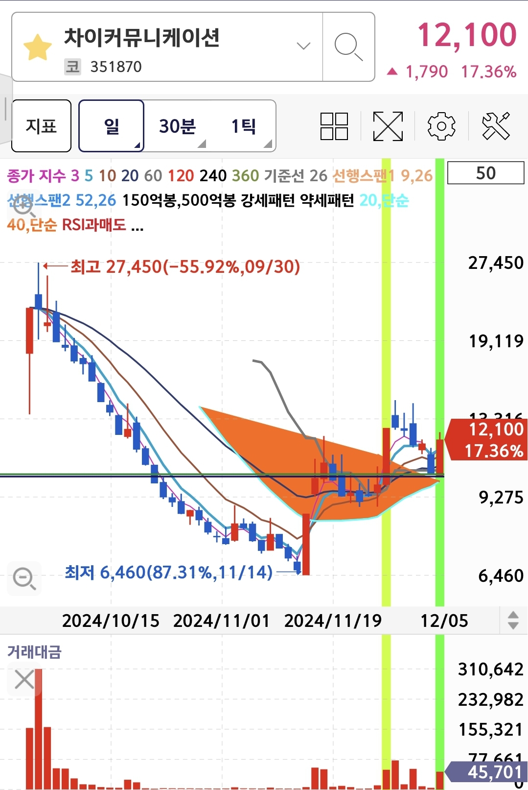 거래대금 : 장대양봉 (457억)