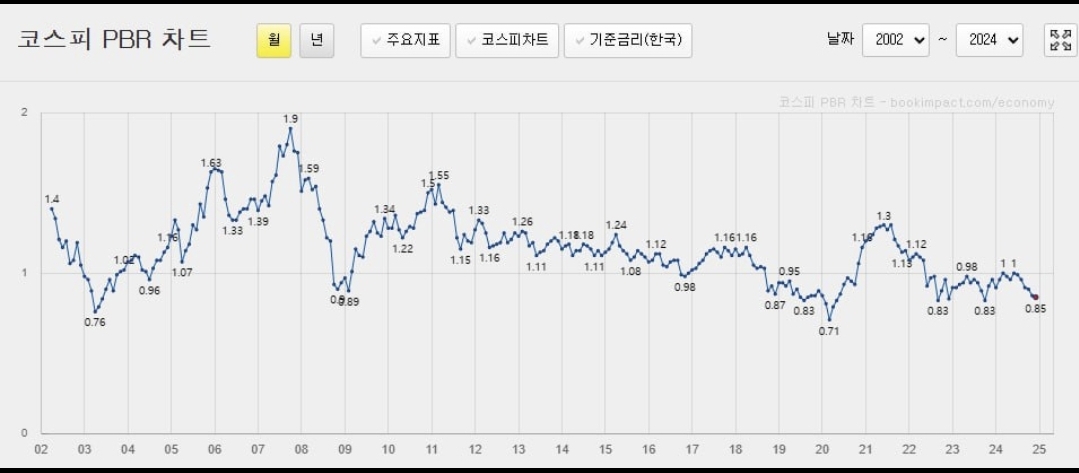 코스피 PBR 2008년 금융위기 수준