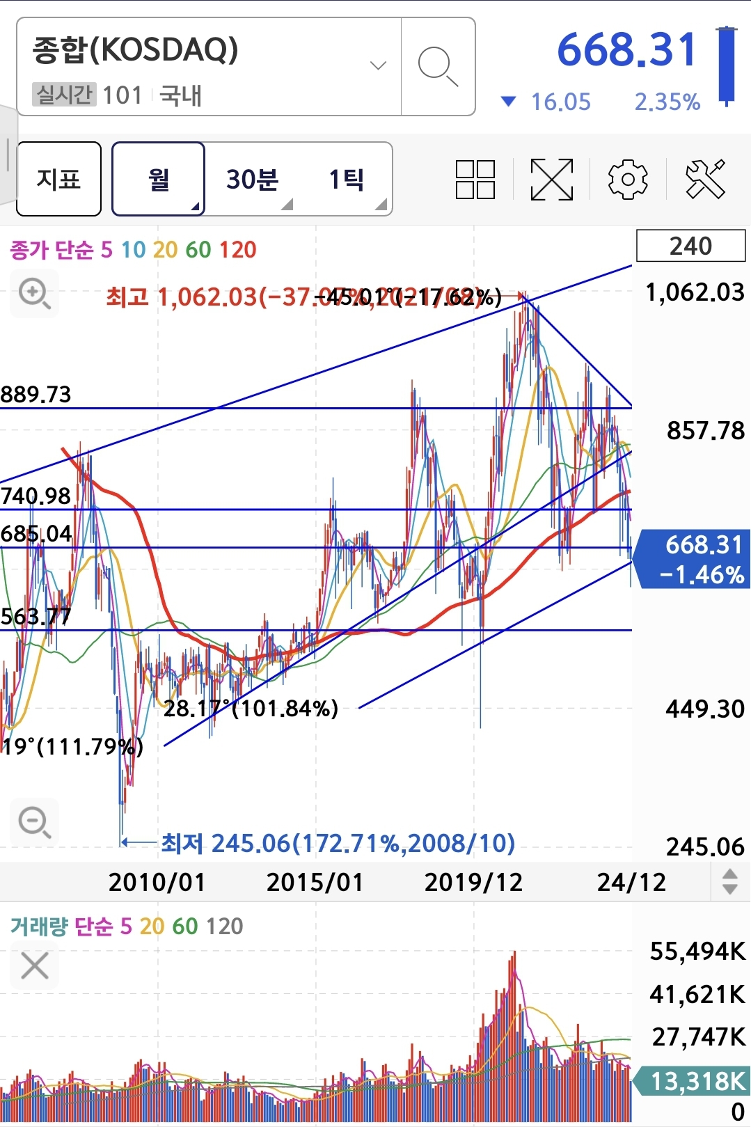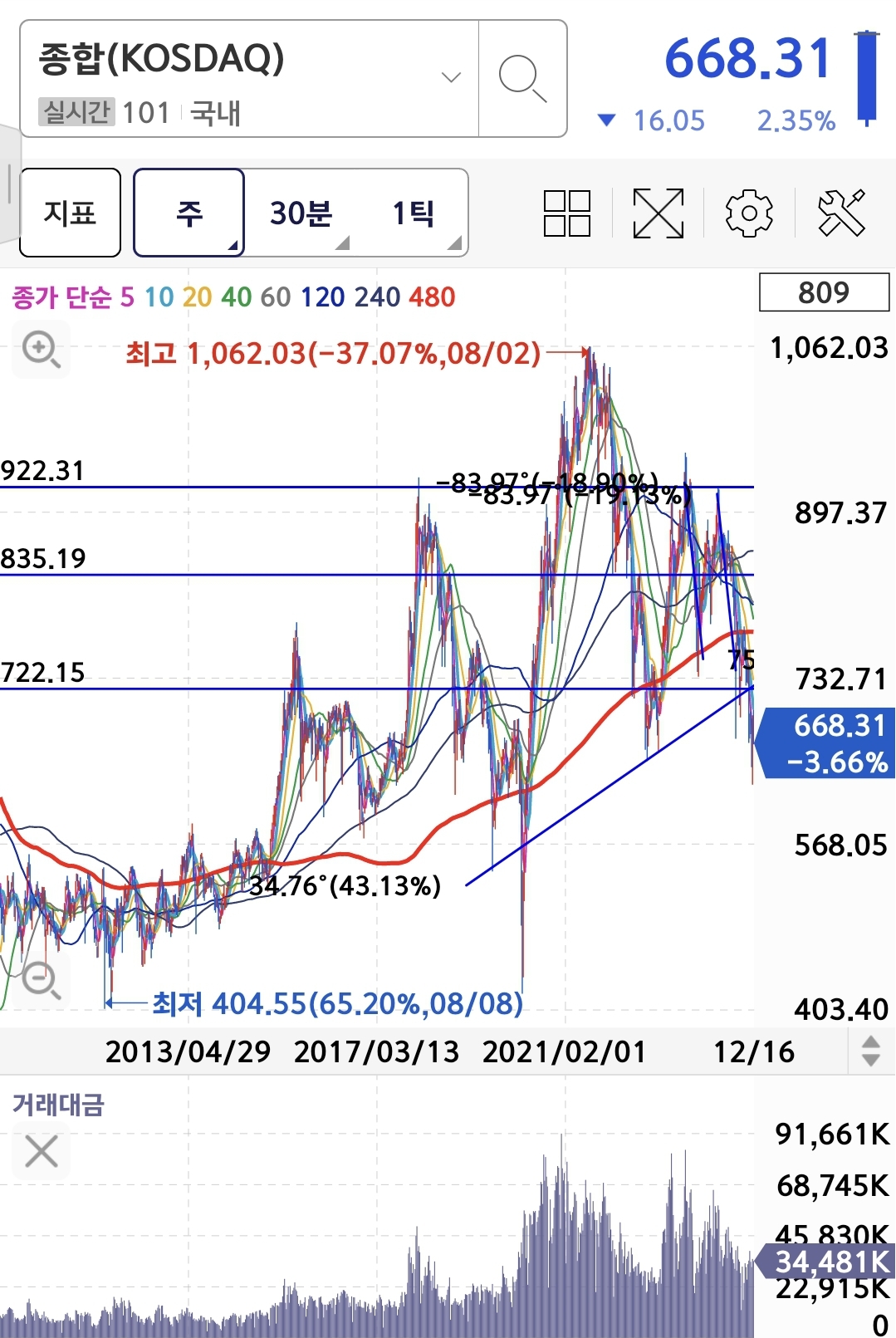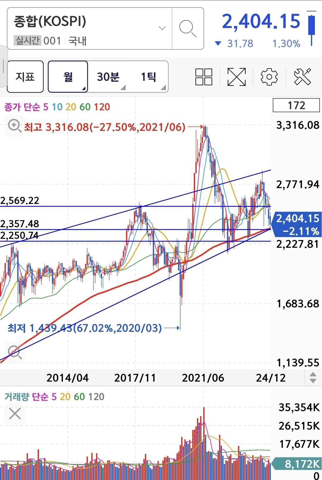 현재 지수 최근 몇년 중 역사적 저점