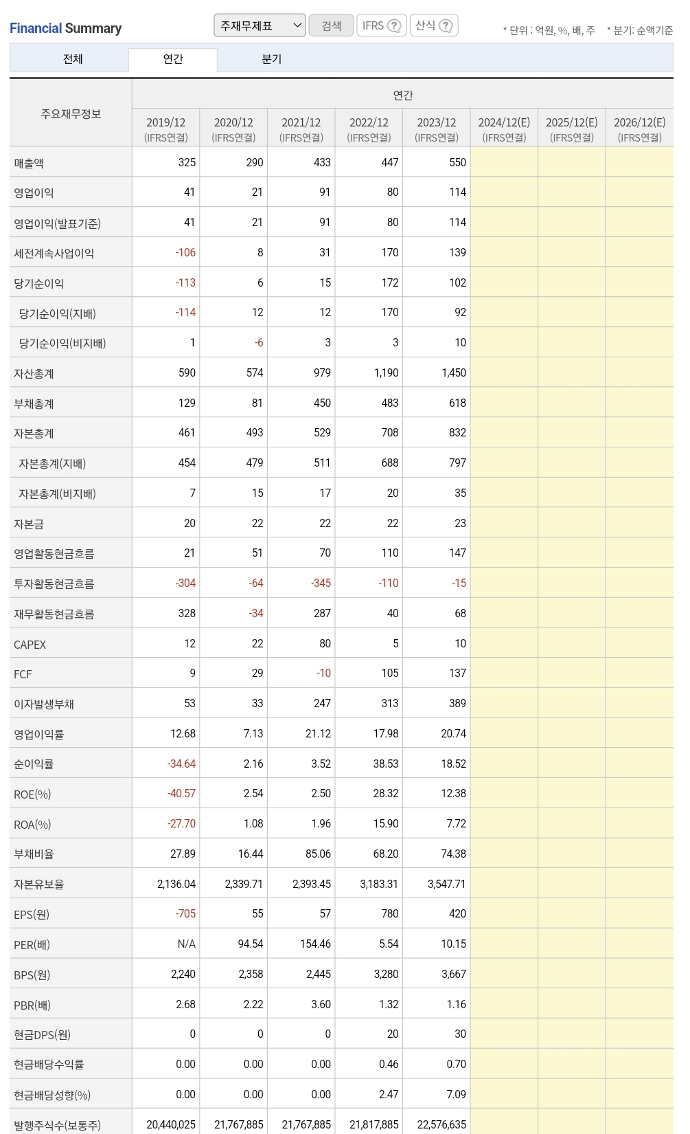실적 : 흑자(재무 좋음)