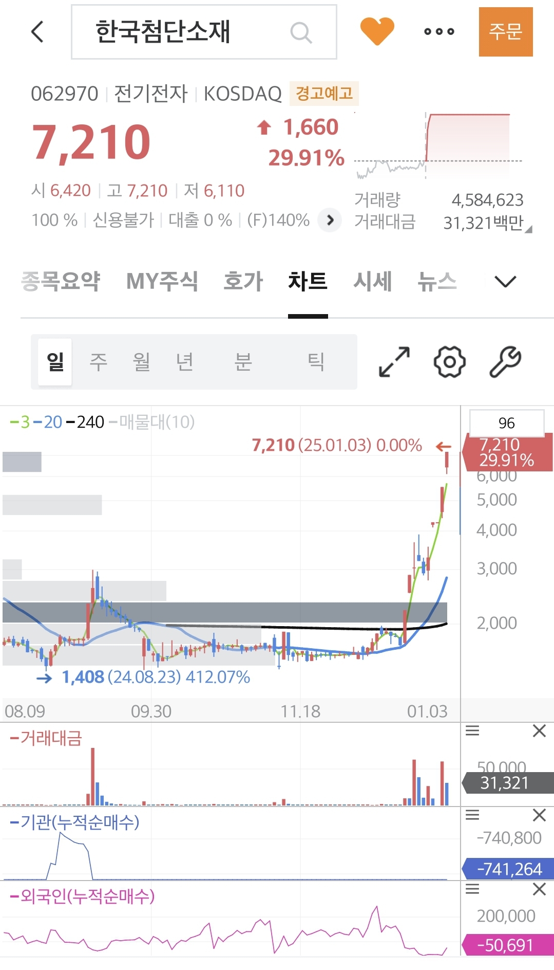 거래대금 : 313억(상한가)
