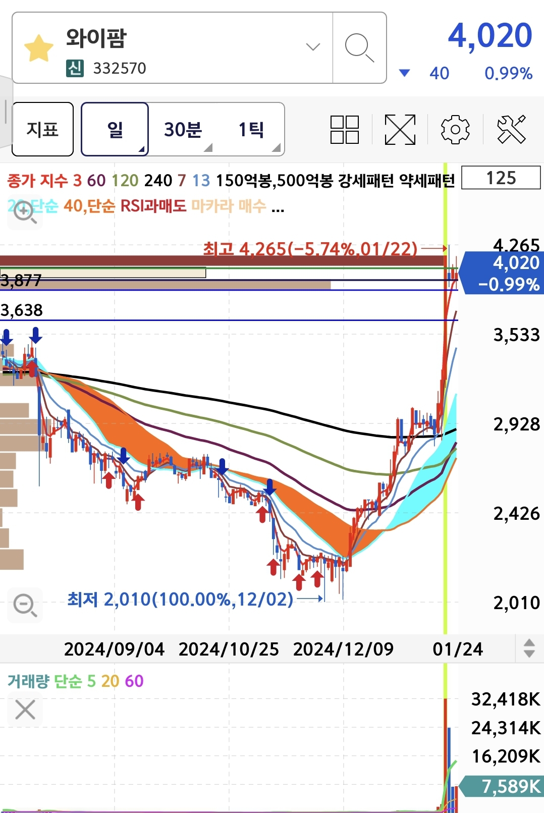 차트 : 역배열에서 정배열로 돌리는 중