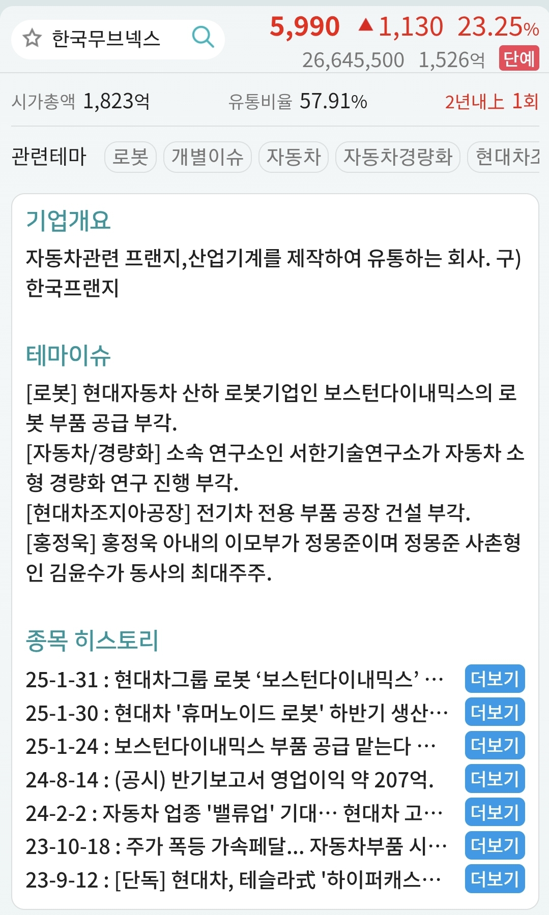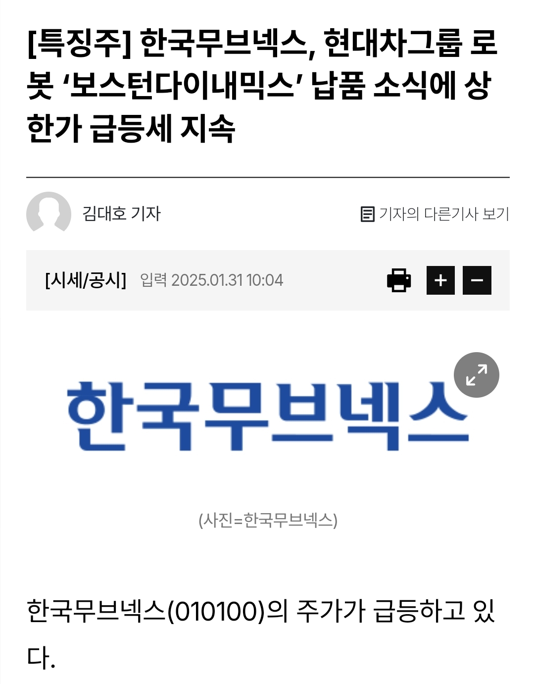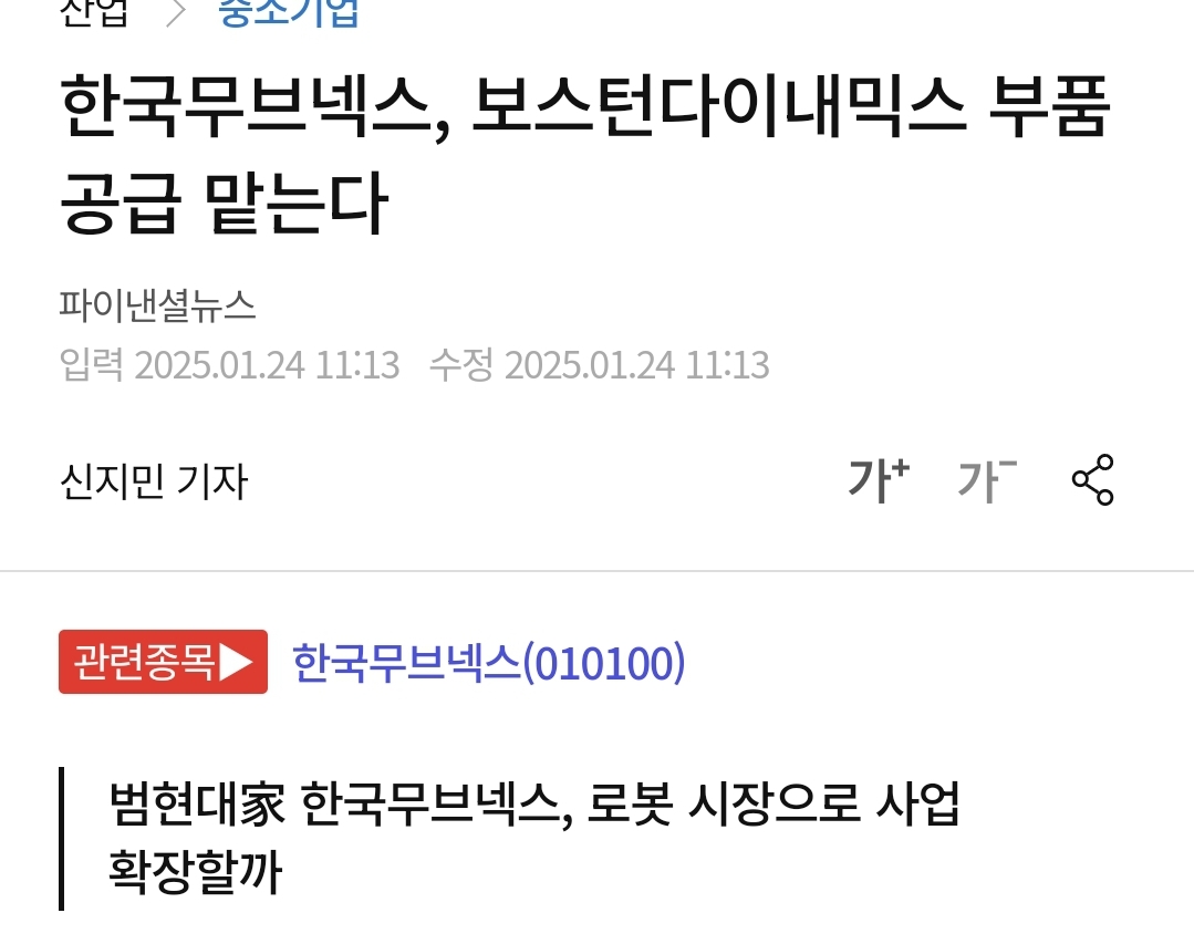 재료 : 현대차 보스턴다이내믹스 로봇부품공급