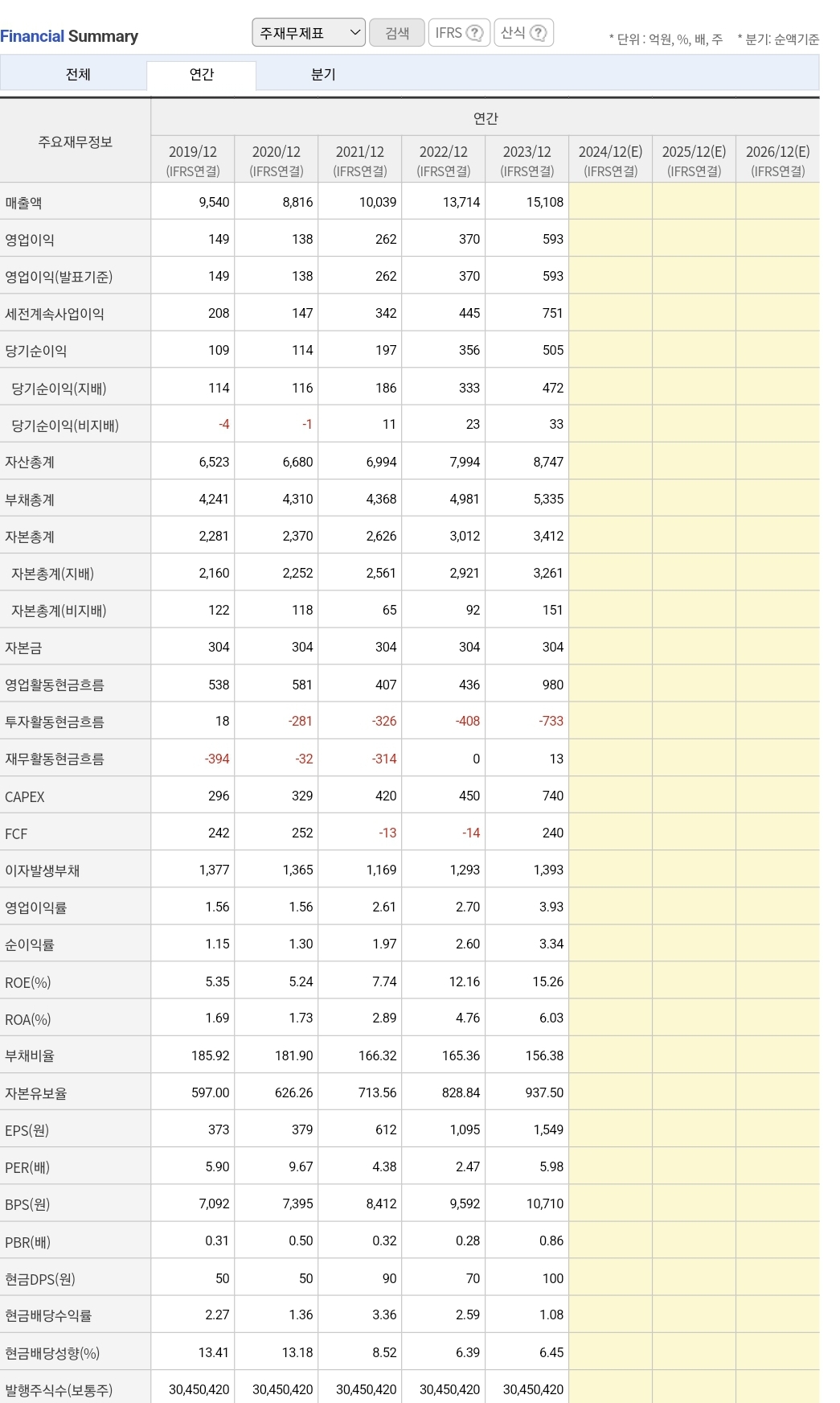 실적 : 흑자(재무 좋음)