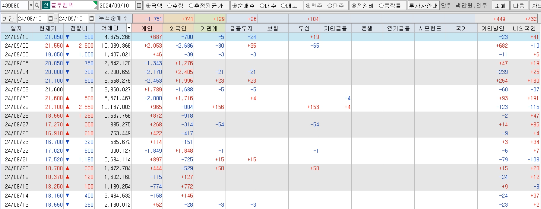 | 종목 | 블루엠텍(보유, 대부분 익절) |