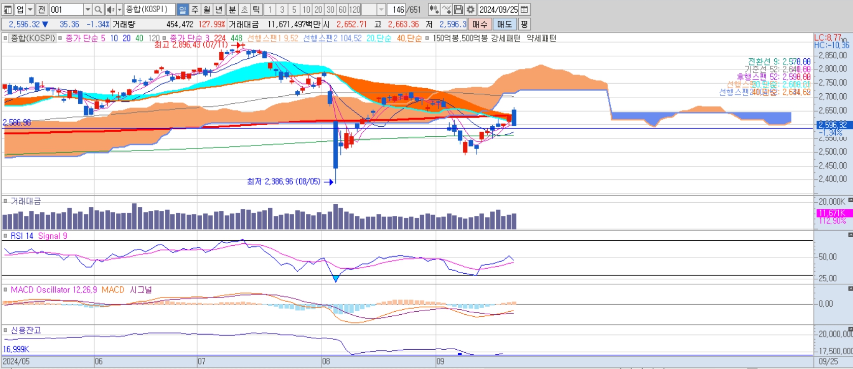 코스피 : 1.34 하락(거래대금 11.7조)