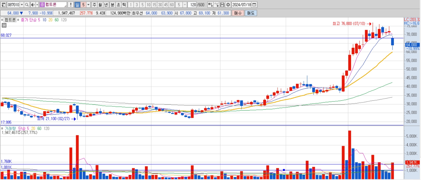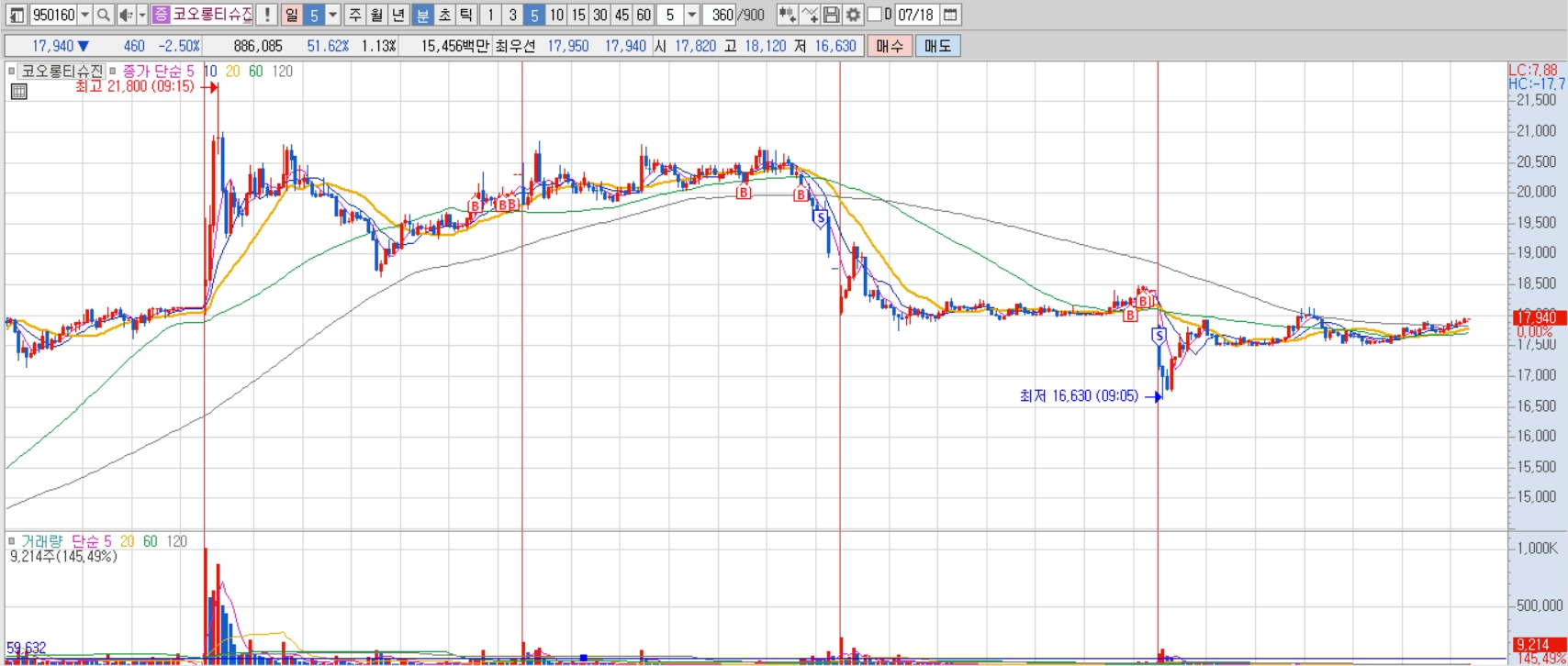 매수근거 바이오테마, 선도주, 급등후 3일선 지지