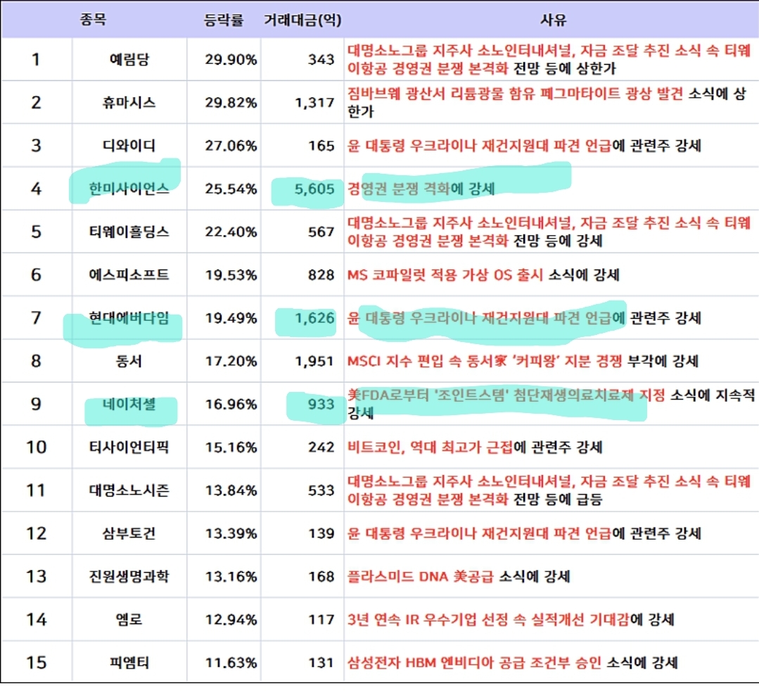 특징주 : 한미사이언스, 현대에버다임