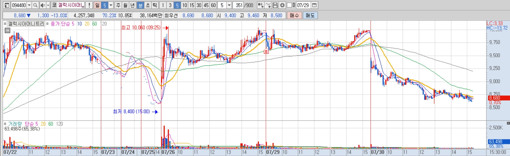 | 분봉 | ![]() 하락세 지속 .... 다음주 매도 고 |