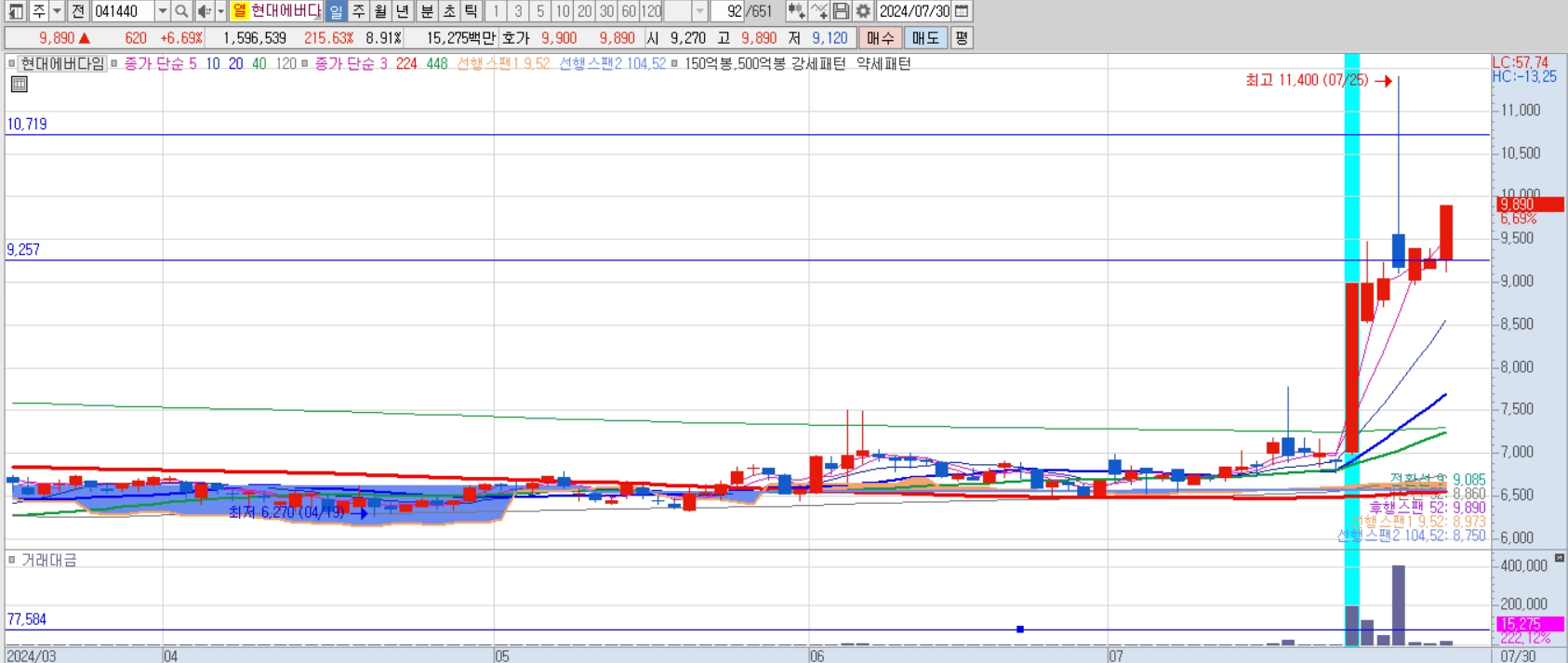 | 매수근거 | 우크라이나 재건주도주, 트럼프 당선 수혜주(종전 가능성 ↑), 장대양봉 후 고가 지지 |