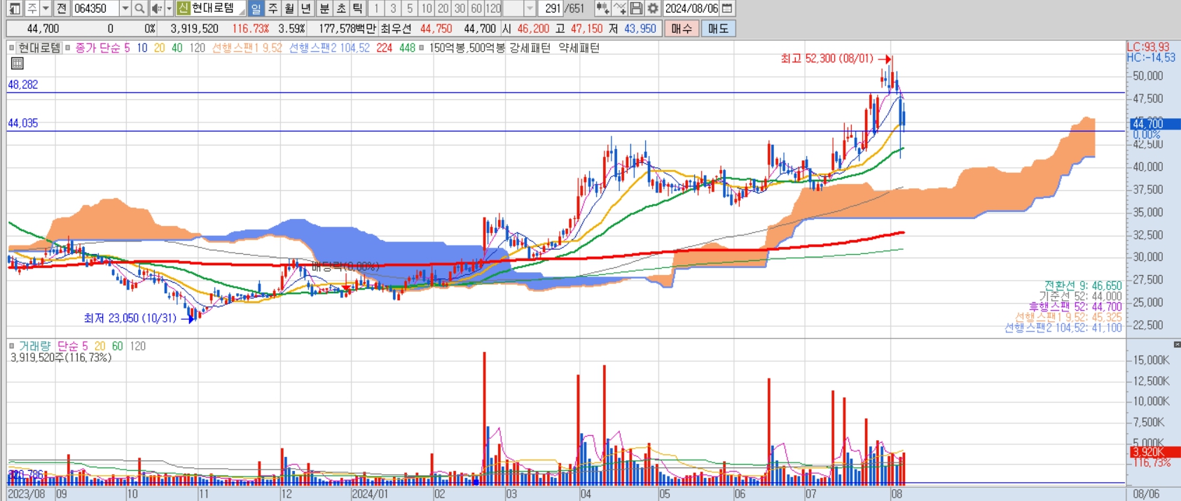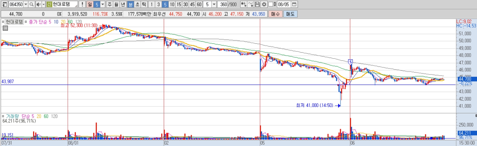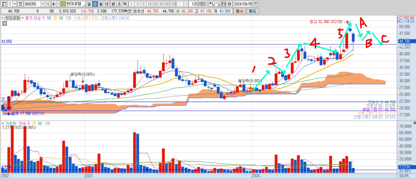 | 시나리오 | 3분할로 매수, 추세이탈 손절, 저항선 80%매도 |