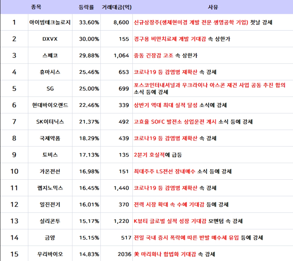 kospi 3.3상승(거래대금 15.5조), kosdaq 6.0 상승(거래대금 8.4조)