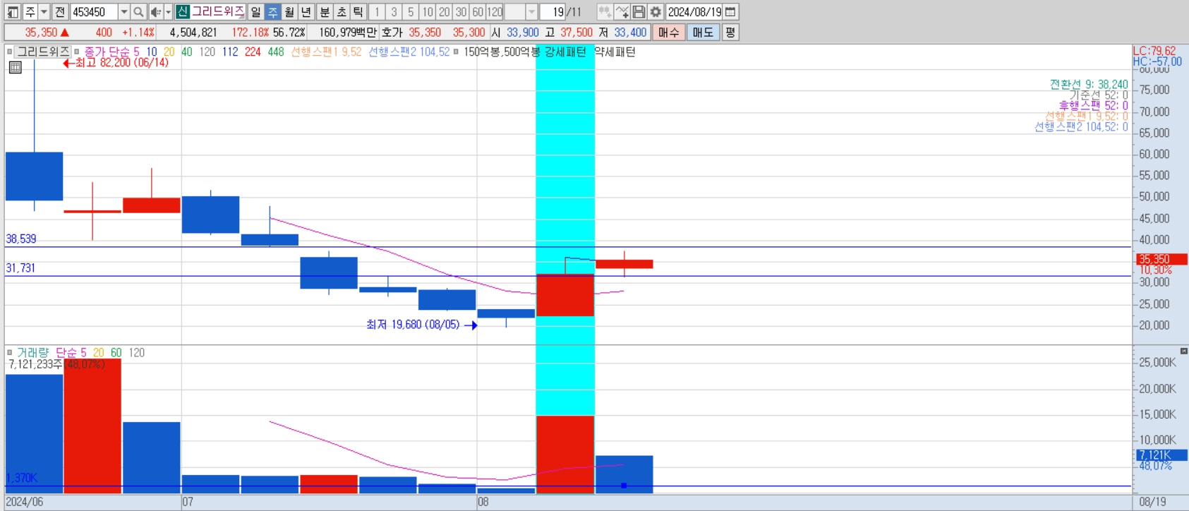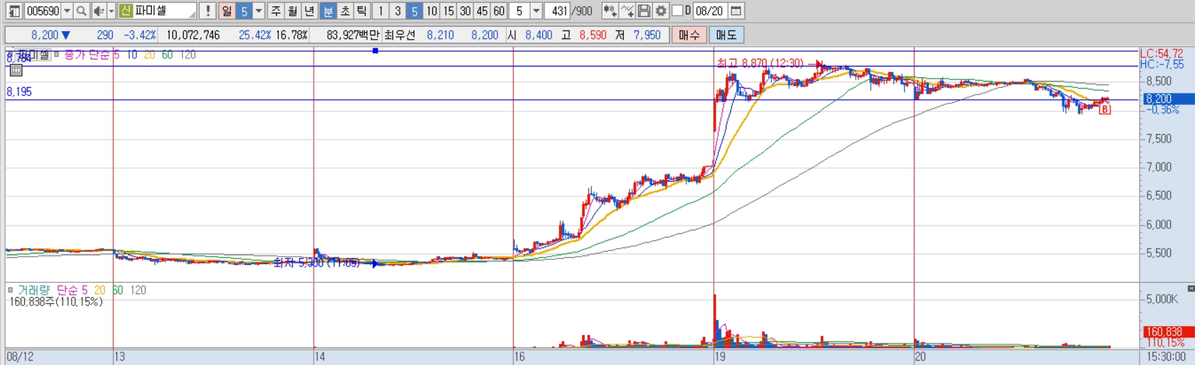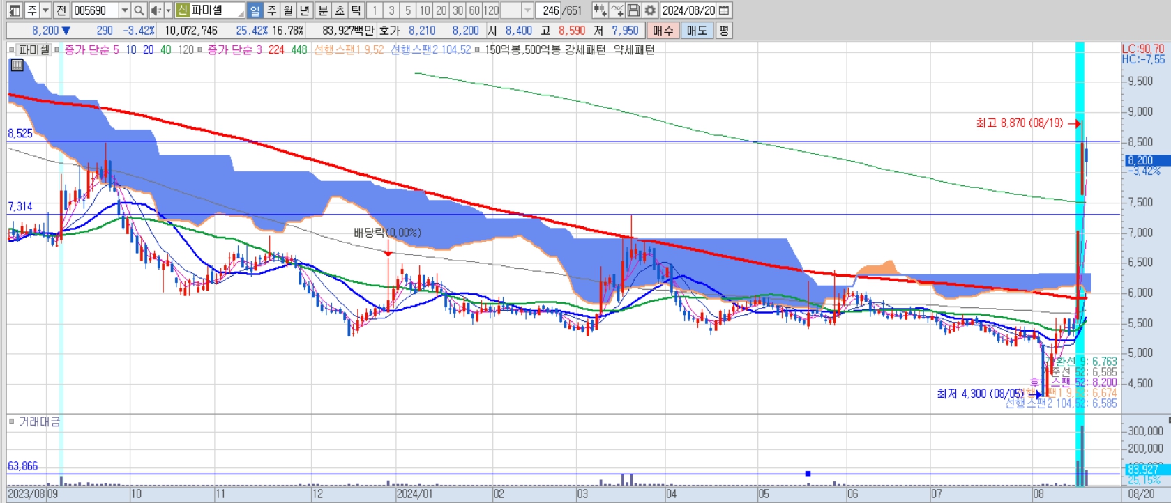| 시나리오 | 주봉상 강한 지지라인, 장막판 말아 올림, 좀더 보유하기 |