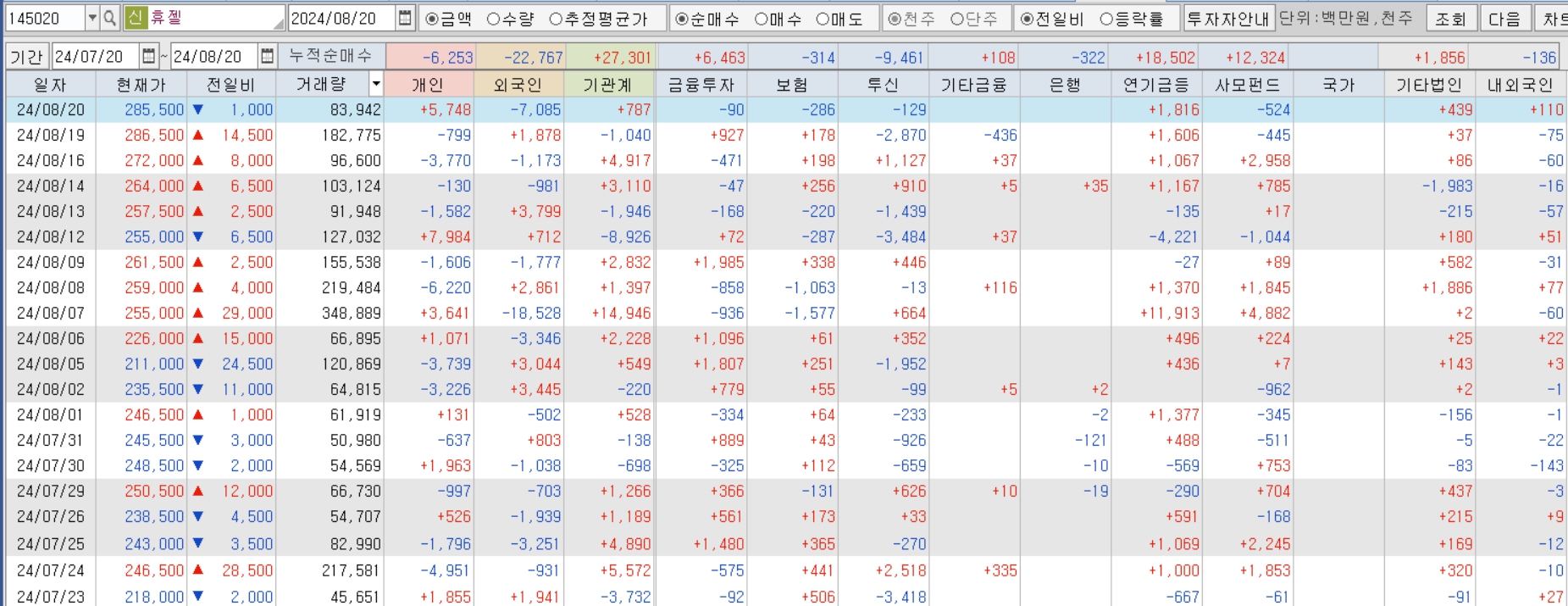 | 비고 | 차트 골드자리(지지 겹침), 시황 good, 수급 개인만 매수(주의) |